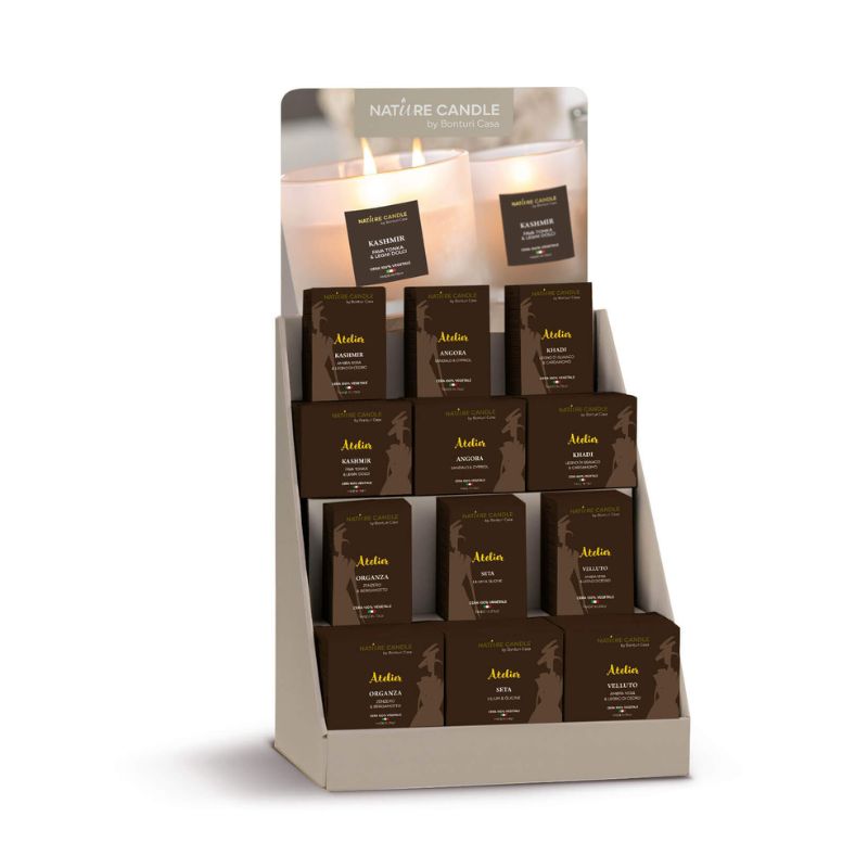 Realizzato in robusto cartone riciclabile, dall’ingombro ridotto, è facile da montare e mette in buona luce i prodotti Nature Candle evidenziandone le principali caratteristiche: la provenienza tutta Italiana e la composizione in cera 100% vegetale. Ogni espositore contiene del materiale promozionale per la formazione e sostegno alla vendita.