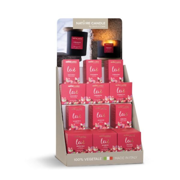 Realizzato in robusto cartone riciclabile, dall’ingombro ridotto, è facile da montare e mette in buona luce i prodotti Nature Candle evidenziandone le principali caratteristiche: la provenienza tutta Italiana e la composizione in cera 100% vegetale. Ogni espositore contiene del materiale promozionale per la formazione e sostegno alla vendita.