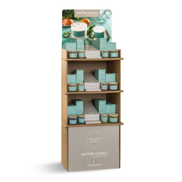 Realizzato in robusto cartone riciclabile, dall’ingombro ridotto, è facile da montare e mette in buona luce i prodotti Nature Candle evidenziandone le principali caratteristiche: la provenienza tutta Italiana e la composizione in cera 100% vegetale. Ogni espositore contiene del materiale promozionale per la formazione e sostegno alla vendita.