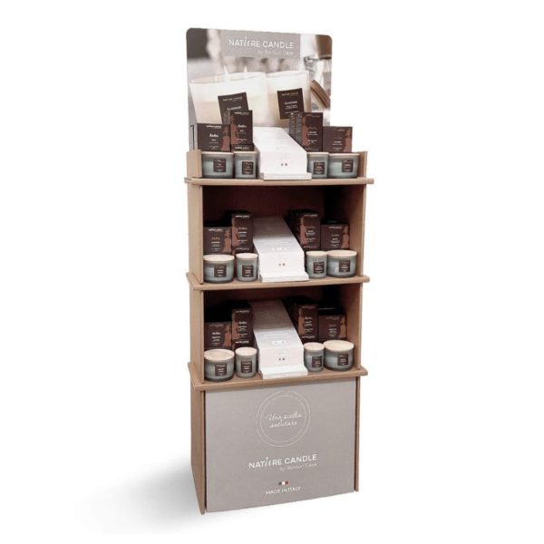 Realizzato in robusto cartone riciclabile, dall’ingombro ridotto, è facile da montare e mette in buona luce i prodotti Nature Candle evidenziandone le principali caratteristiche: la provenienza tutta Italiana e la composizione in cera 100% vegetale. Ogni espositore contiene del materiale promozionale per la formazione e sostegno alla vendita.