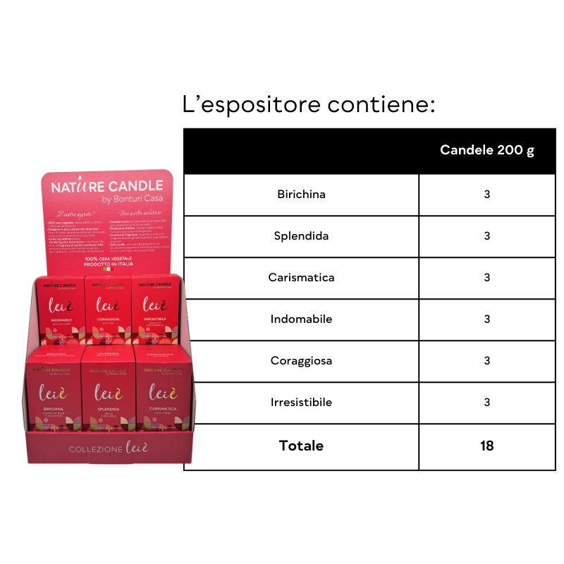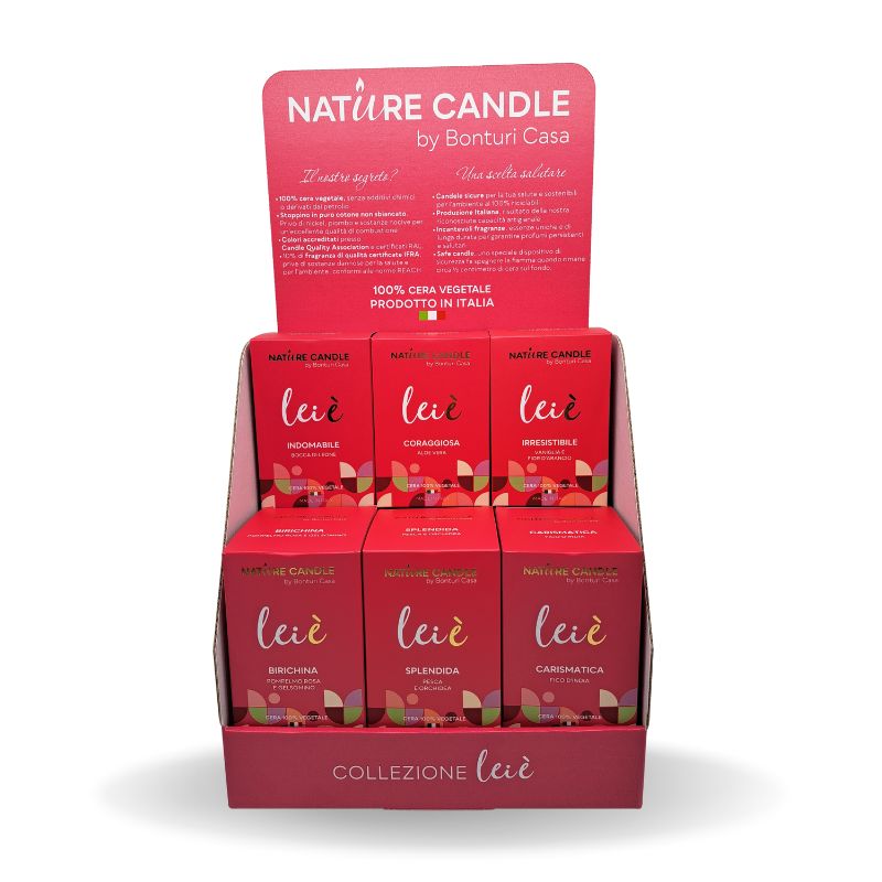 Esalta le candele della Collezione Leiè con l’Espositore da Banco Mini di Nature Candle. Questa linea evoca la forza, l’emozione e la passione delle donne, offrendo una gamma di fragranze selezionate da fiori e frutti fragranti. Dal carattere birichino al coraggioso, ogni candela e profumatore aggiunge personalità all’ambiente.