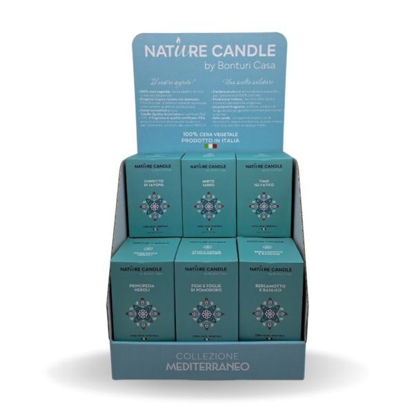 Realizzato in robusto cartone riciclabile, dall’ingombro ridotto, è facile da montare e mette in buona luce i prodotti Nature Candle evidenziandone le principali caratteristiche: la provenienza tutta Italiana e la composizione in cera 100% vegetale. Ogni espositore contiene del materiale promozionale per la formazione e sostegno alla vendita.