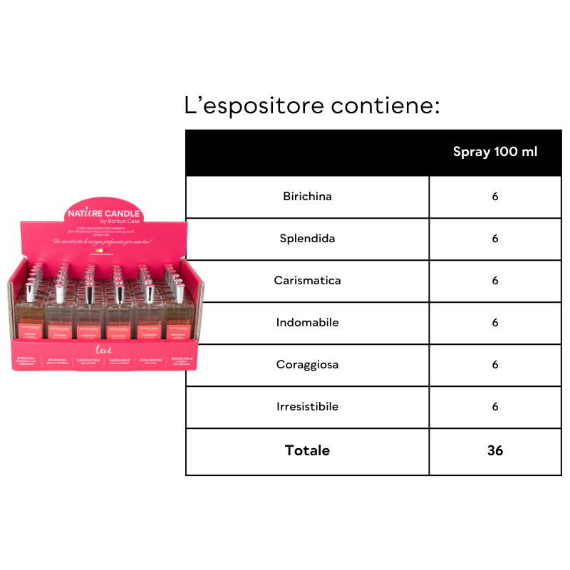 Contenuto: 36 Spray Ambiente da 100ml (6 Spray per ogni fragranza)